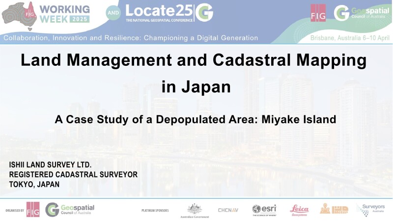 国際測量士連盟のイベント「FIG 2025」で、私達のメンバーの土地家屋調査士石井が、三宅島の所有者不明土地問題についてプレゼンを行いました。